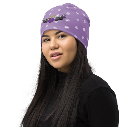Lavender Snowflake Angel Heart Beanie
