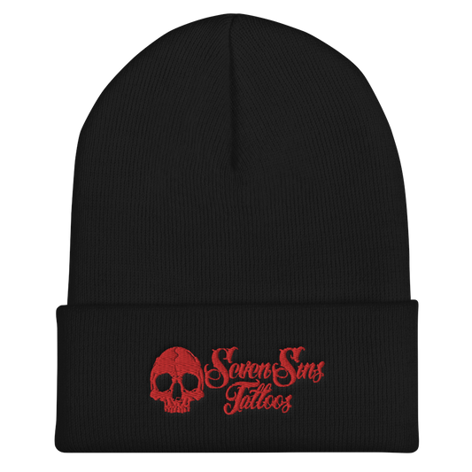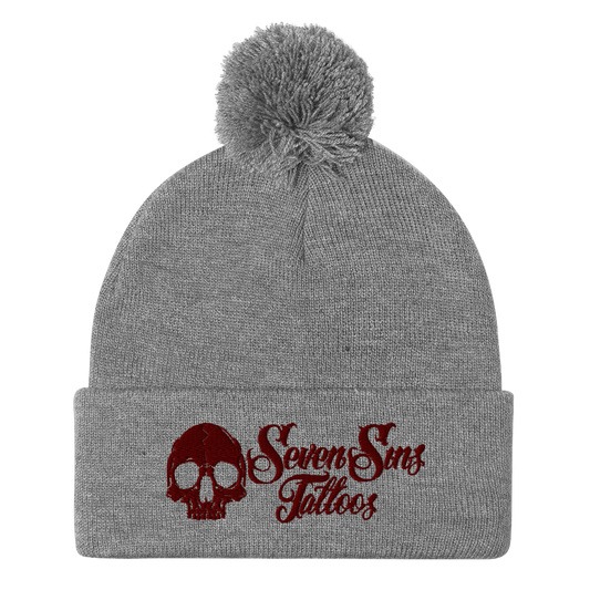 Seven Sins Pom-Pom Beanie - Maroon Logo